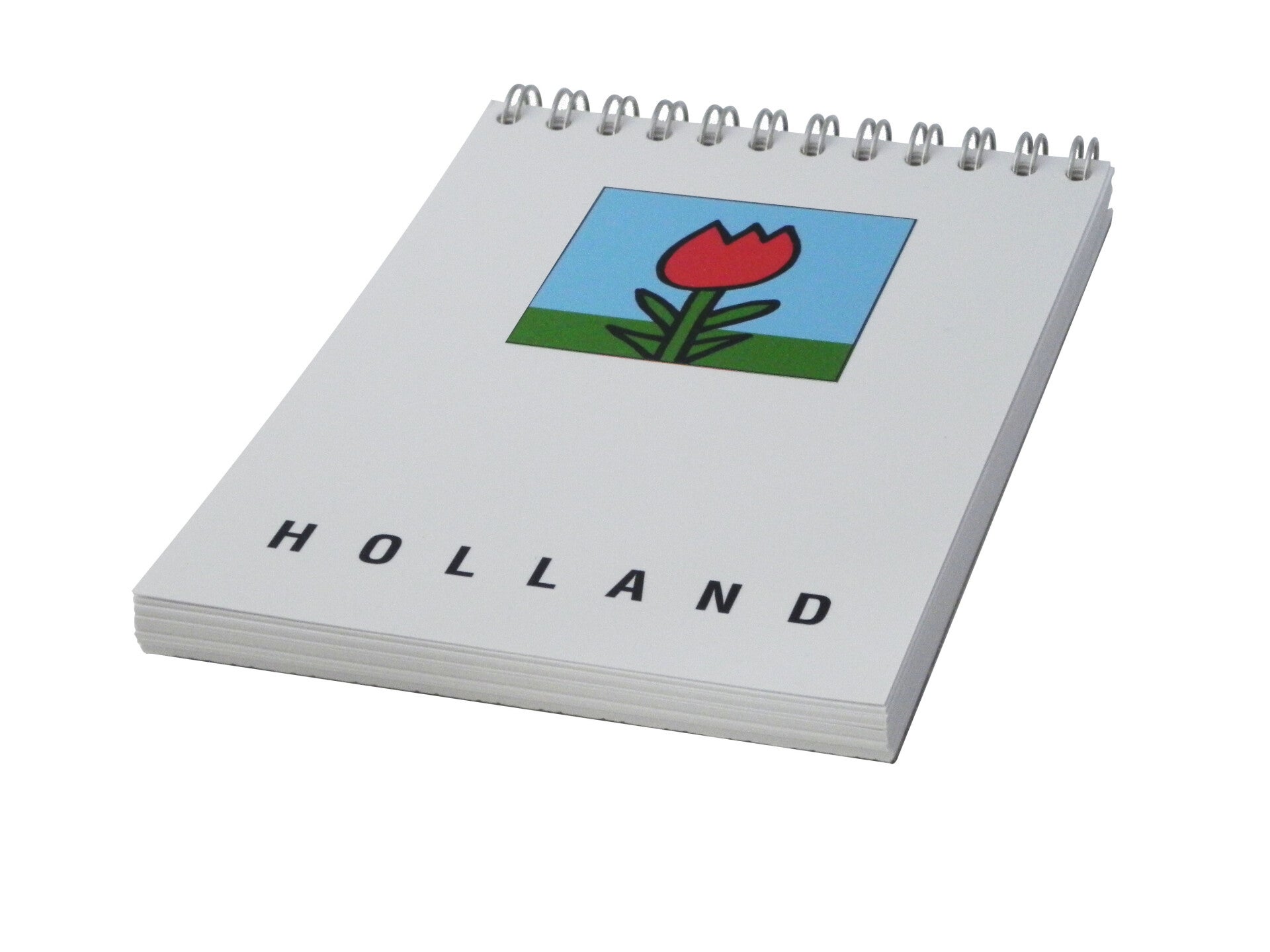 Memoblok Hollandlijn. Keuze uit 6 varianten: molen, koe, tulp, huisjes, kerk en fiets. Afmeting: 10 x 15 cm